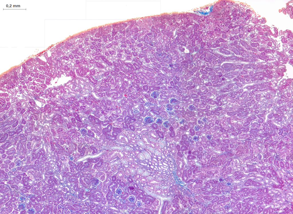 Ces structures sont entourées de tissu conjonctif fibreux constituant l’interstitum rénal.
